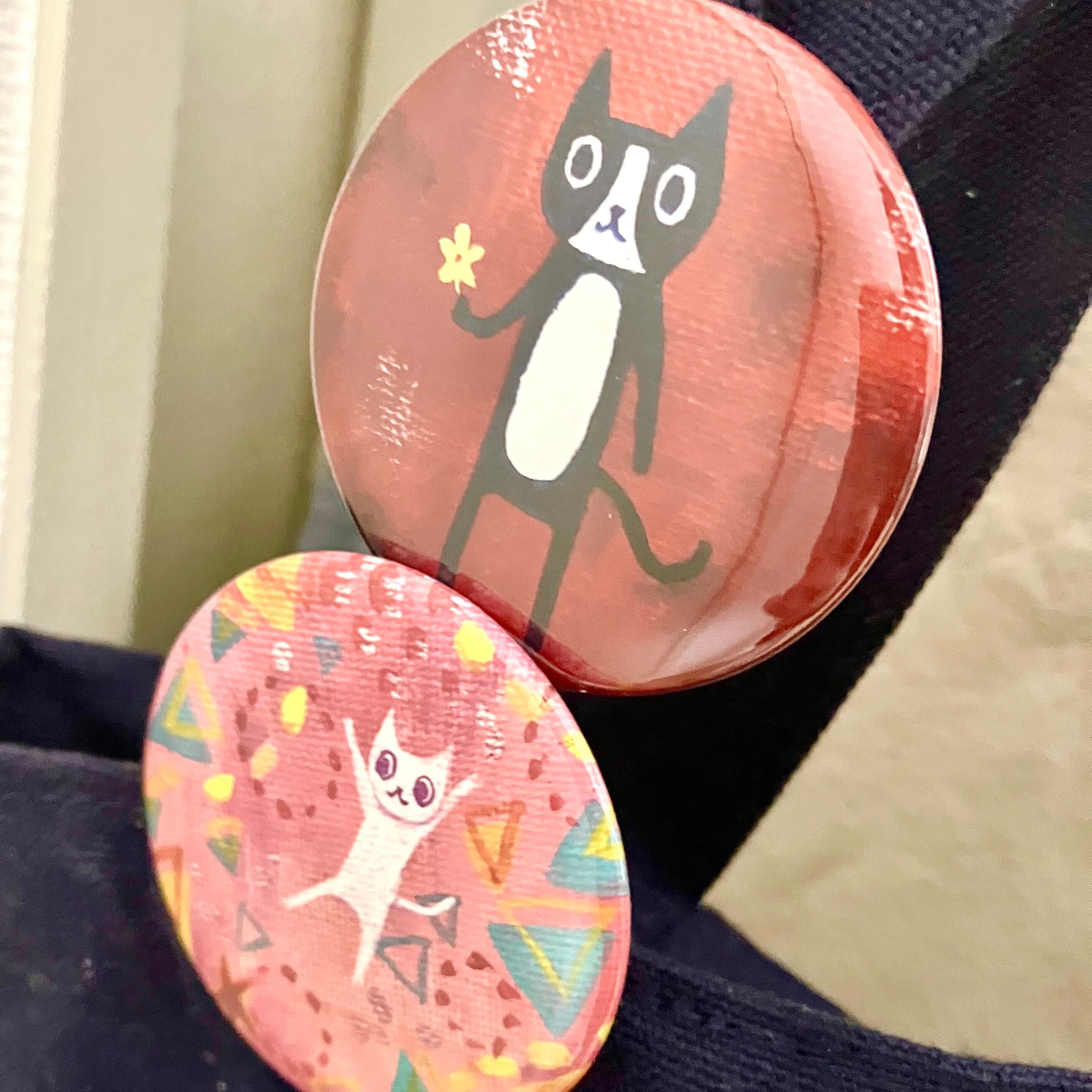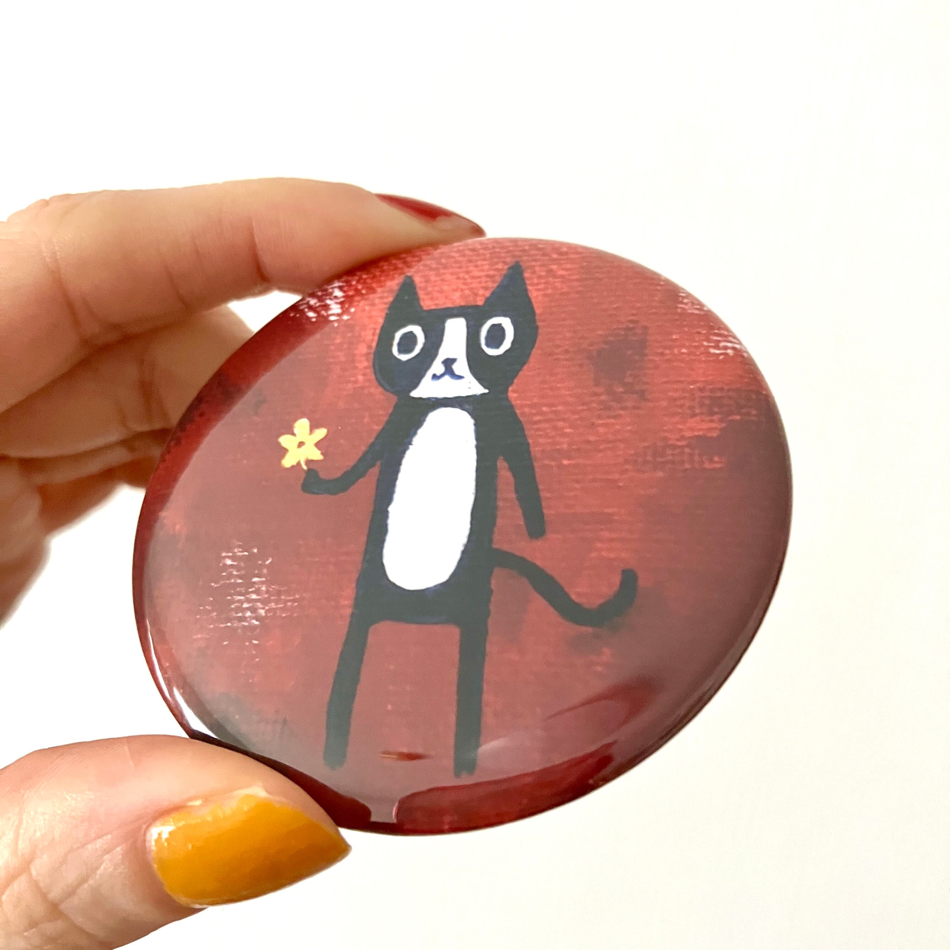 花を持つの猫の絵を元にした缶バッジです。